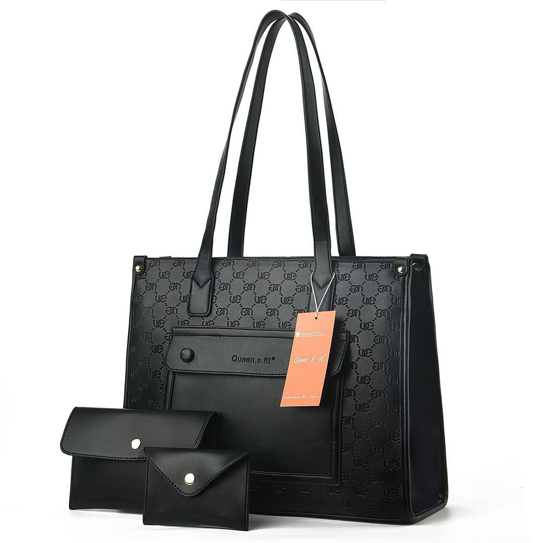 This elegant set features a spacious tote bag and a matching wallet, both showcasing a sophisticated plaid pattern in beige, black, red, and white. The tote bag is designed with sturdy black shoulder straps and a convenient front pocket with a "Queen.s.fit" emblem. The accompanying wallet mirrors the classic plaid design, offering a cohesive and stylish look. This versatile set is perfect for everyday use, adding a touch of classic charm to any outfit while keeping your essentials organized. Highlights: Classic plaid design Coordinated tote and wallet Spacious and practical tote bag Elegant and timeless aesthetic Versatile for everyday use