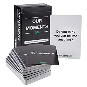 Our Moments (Kids) Game is a delightful and engaging card game designed to foster meaningful conversations and strengthen bonds among children. This game encourages kids to explore their creativity and share their thoughts through a series of fun and thought-provoking questions and prompts. Each card features a question or activity that sparks imagination and discussion, such as “What would you do if you were a superhero?” or “Share a fun memory from school.” The game is designed to be both entertaining and educational, helping children develop their communication skills, empathy, and self-expression. Ideal for family game nights, playdates, or classroom activities, Our Moments (Kids) Game provides an interactive way for children to connect with each other and their surroundings. The game is easy to play and suitable for various age groups, making it a great tool for enhancing social interaction and creating lasting memories. Discover your children and let them get to know you. Educate through fun. Improve your listening skills – ask a question and listen carefully to the answer. Talk about it. There is no correct answer and no judgment.
