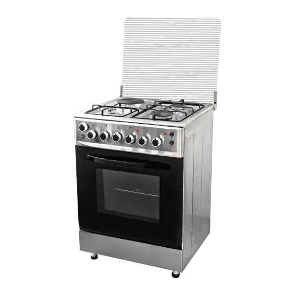 Enhance your cooking experience with our **3 Gas + 1 Electric Cooker**, designed for **safety, efficiency, and style**. With **60x60cm dimensions**, it features a **shiny enamel hob** and **pulse ignition** for effortless operation. The **flame failure device** ensures added safety by automatically cutting off gas if the flame goes out. Enjoy versatile cooking with a **64L oven capacity**, **top and bottom heating**, a **rotisserie function**, and an **oven light** for easy monitoring. The **glass top and oven door** add a modern touch, while the **black fast-heating plate** provides additional cooking flexibility. Complete with an **included pan and grill rack** and backed by a **2-year warranty**, this cooker is built for **performance and reliability**.
