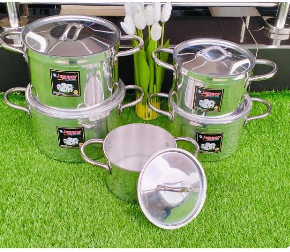 🌹Back in Stock🌹 *10pcs Alluminium Cookware set* 💧Heavy duty and good quality 💧5 cooking pots + 5 lids