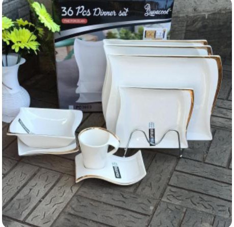 36pcs rectangular shaped Dinner set ✔️6pcsDinner plates ✔️6pcs Medium plates ✔️6pcs side plates ✔️6pcs bowls ✔️ 6pcs cups(220cc) ✔️ 6pcs saucers 🌹Good quality is assured & well packed in its package🌹