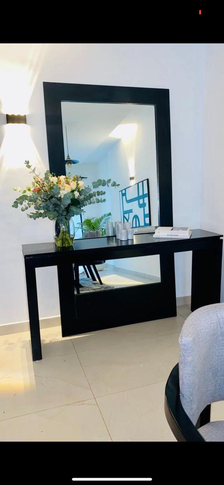 Luxury in Every Detail. Enhance your dining space with this elegant black console and full-length mirror, designed to add depth, sophistication, and functionality to your interior. Bold & Modern Aesthetic. High-Quality Finish. Perfect for Dining & Living Spaces. Custom-made to your preference. Delivered on time. Unmatched value for money