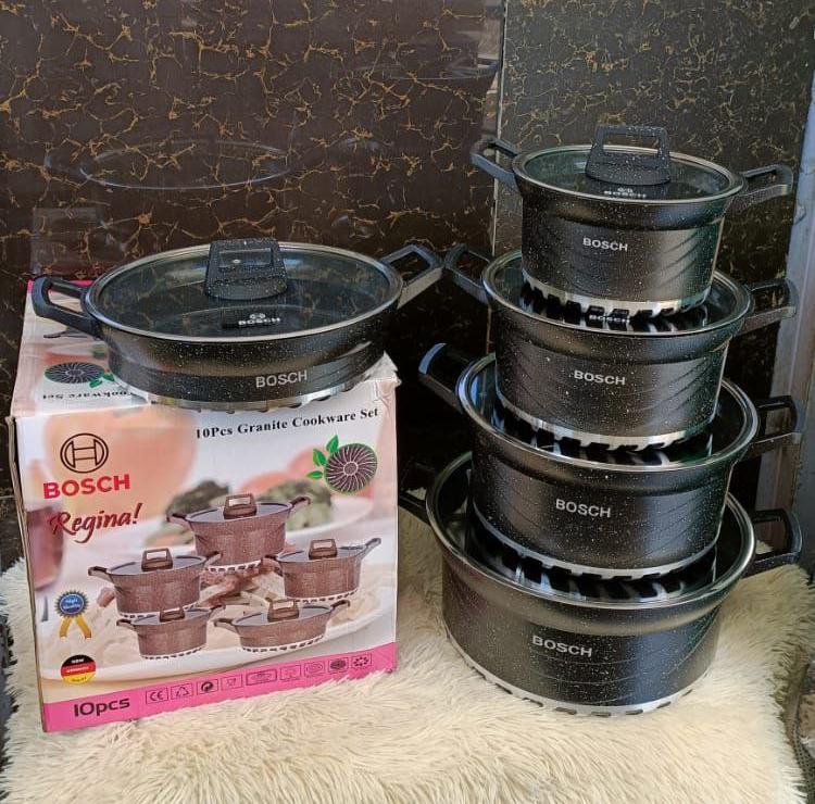 10pcs bosch cookware set now available ..Contains 5 cooking pots and 5 lids